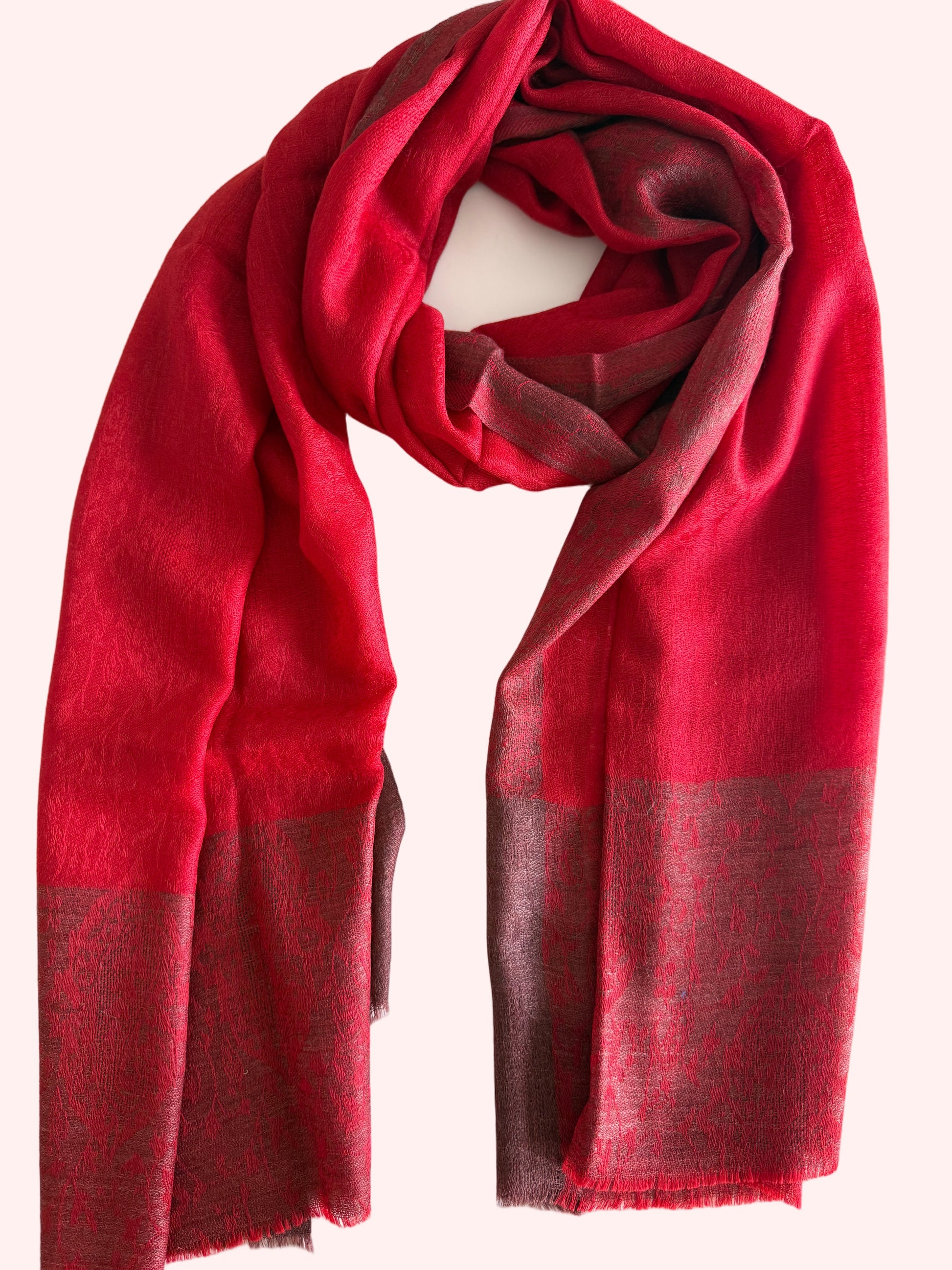 Élégance Subtile – Pashmina à Bordure Ton sur Ton Fait Main par Maison Élégance